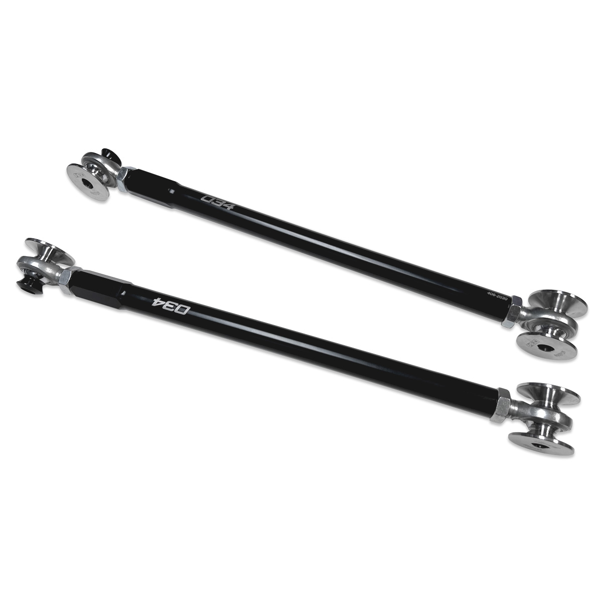 034Motorsport’s Motorsport Adjustable Rear Toe Links facilitate simple and precise toe adjustments, making alignment changes for optimal track performance or even tire wear easier than ever. In addition, Motorsport Adjustable Rear Toe Links feature Aurora spherical rod ends for ultimate precision and durability – ensuring that proper suspension geometry is maintained during hard cornering.